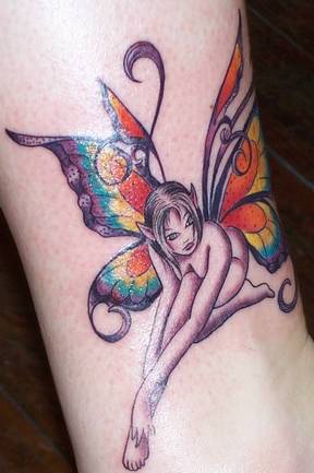 Fairy tattoos offer many women a hance to express themselves by the fairy they choose. Fairy tattoos can really encompas a wide vareity of styles, designs and dieas making them very versitile and fitting for almost anyone's peronsality. For example there are everything from Gothic Fairy Tattoos to express the deeper darker side of a person all the way to whimsical fairy wings tattoos for the upper back to show the light flighty and joyus side of a person. That is honestly what makes fairy tattoos such a draw for many women. They can express through this beautiful image just about any mood, feeling, idea, or value that they want. You can have a sexy fairy in a come hither pose to express the more alluring side of a person or a studios book fairy.